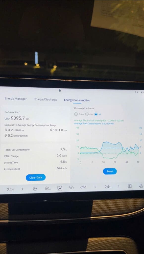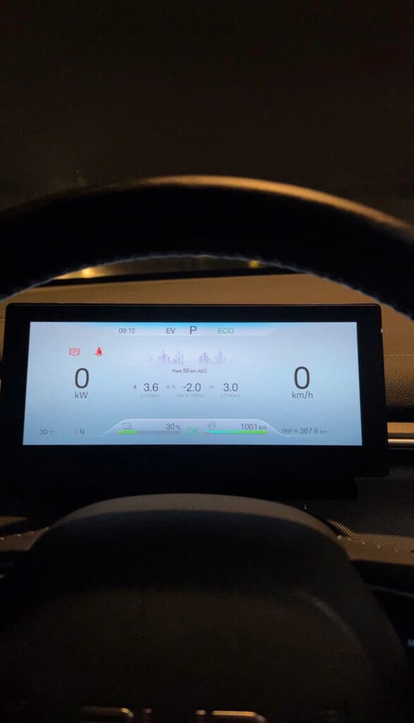 - Dự đoán tổng hành trình: Với xăng còn 1001 Km và Pin còn 30%, BYD Seal 5 có thể đạt tổng quãng đường di chuyển trên 1400Km! (So với con số công bố của BYD 1200Km++).